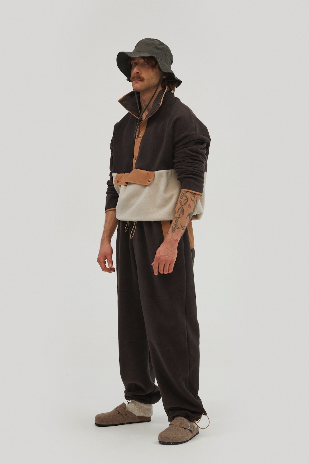 На штанах: