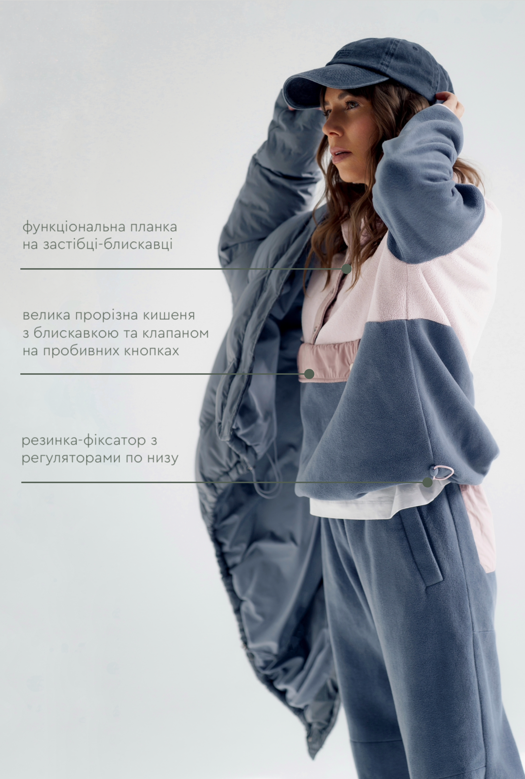 • велика прорізна кишеня з блискавкою та клапаном на пробивних кнопках