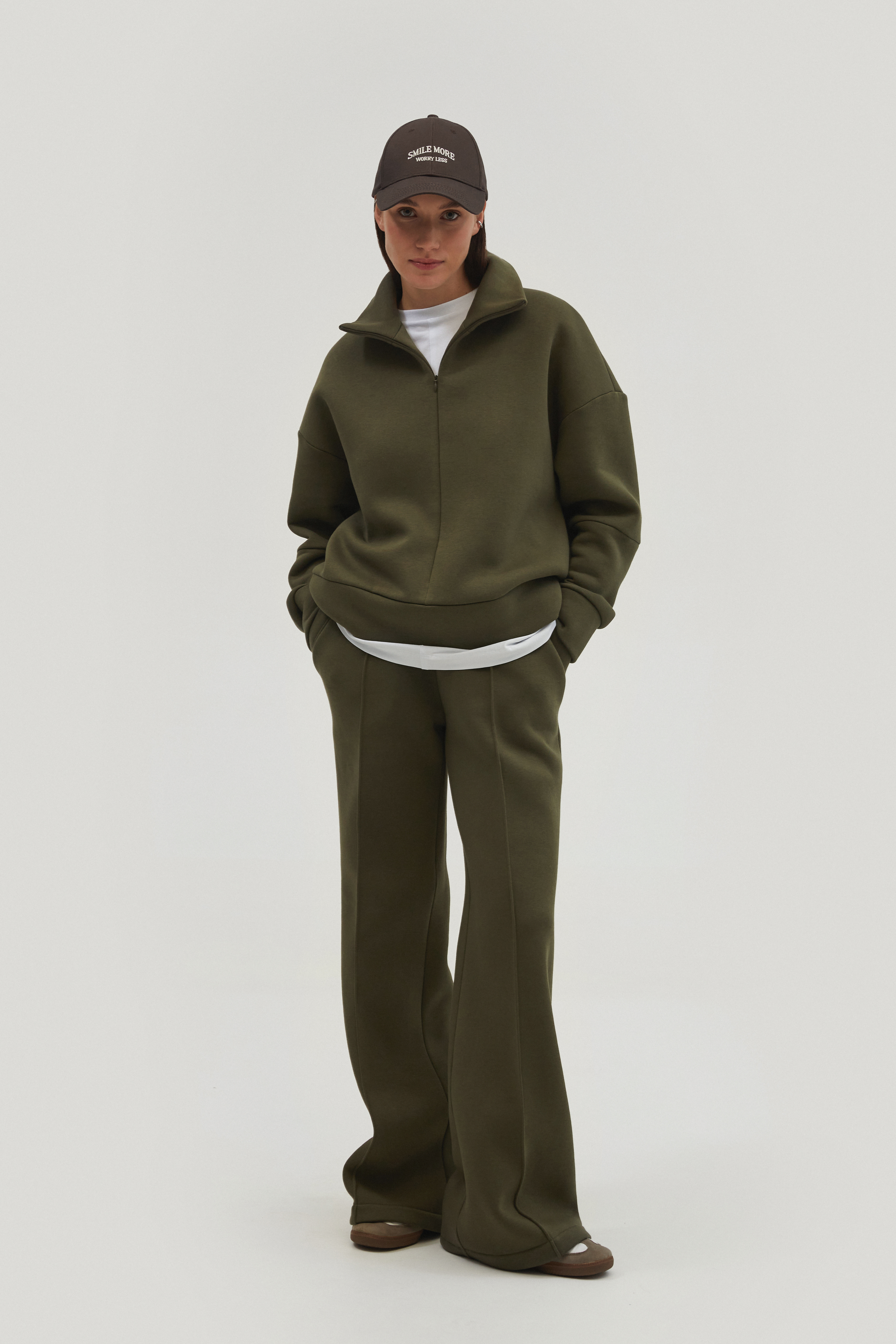 На штанах: