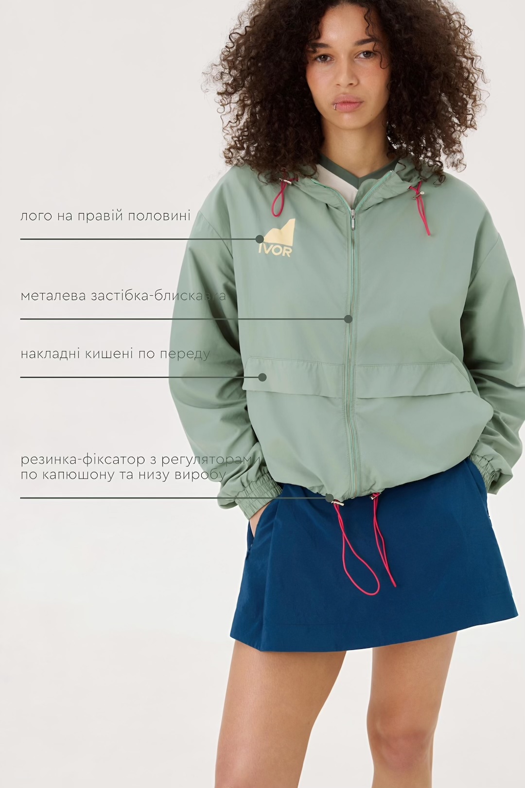 • резинка-фіксатор з регуляторами по капюшону та низу виробу